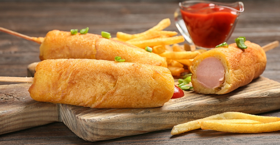 В сосиски вставьте шпажки, обваляйте их в муке, затем окуните в тесто и обжарьте в большом количестве масла. Приятного аппетита!