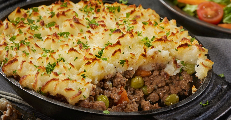СБОРКА И ВЫПЕЧКА. Разогрейте духовку до 200°C. Переложите мясную начинку в огнеупорную форму. Сверху аккуратно распределите картофельное пюре. С помощью вилки создайте на поверхности волнистый рисунок — это увеличит площадь и даст больше хрустящей корочки. Посыпьте оставшимся сыром. Выпекайте на верхнем-среднем уровне духовки около 20-25 минут, пока пюре не подрумянится, а начинка не начнет пузыриться по краям.